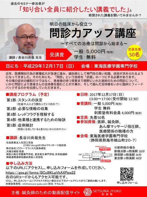2017-12-17 長谷川尚哉先生による「問診力アップ講座 」
