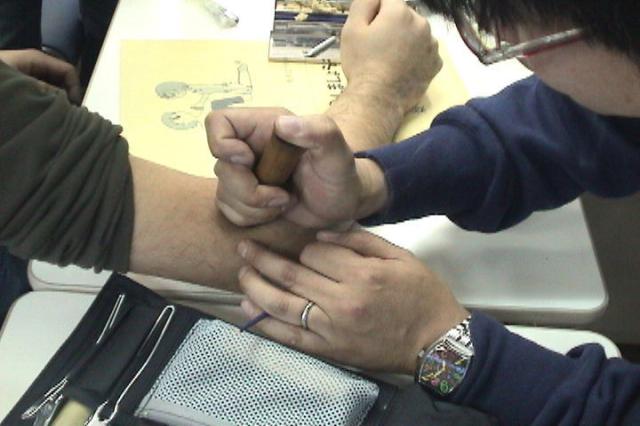 各テーマごとにテキストを配り、その症状別の取穴・施灸法の実技を行います。