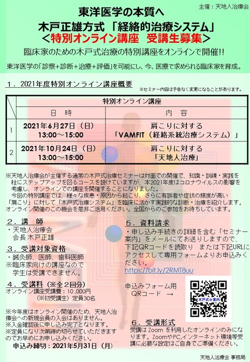 2021-06-27 2021年度 木戸正雄方式「経絡的治療システム 特別オンライン講座」