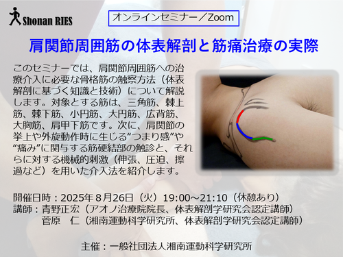 2025-08-26 オンラインセミナー:肩関節周囲筋の体表解剖と筋痛治療の実際